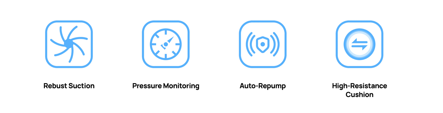 For smooth surfaces, its suction performance is boosted by 35%. For less smooth surfaces, the optional GripMate accessory, equipped with a back cover and pins, offers a secure grip, guaranteeing reliable performance in any scenario.